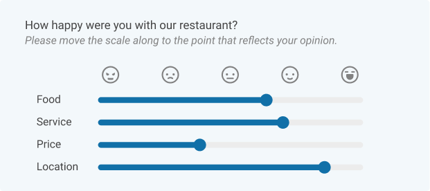 There are a few ways that close ended questions can be structured. These examples provide a variety of questions that illustrate how different types of closed questions can be formatted. For context, we’ll imagine we are running a hospitality survey with questions regarding a restaurant service.