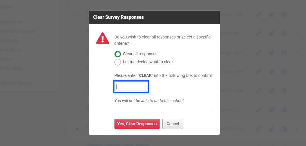 Introducing additional options for clearing your survey responses.