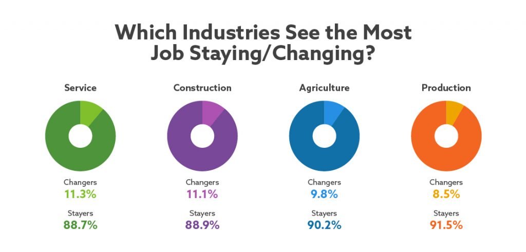Which industries see the most job changing?