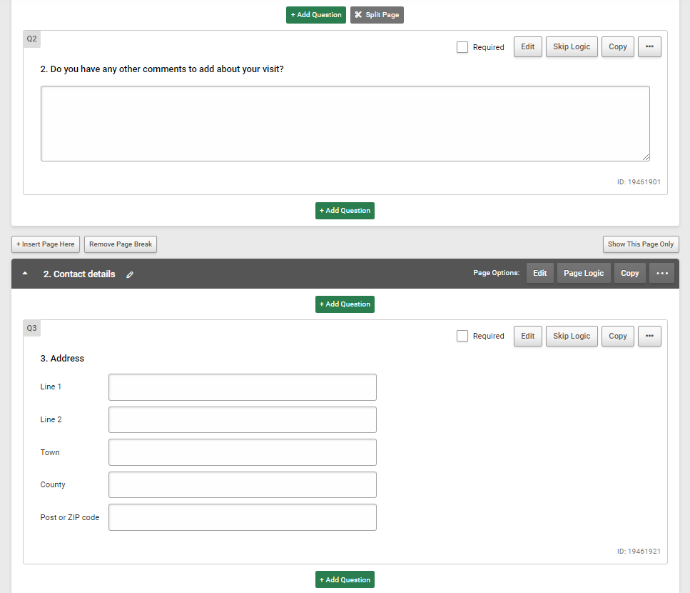 To do this, and for other reasons as well which we’ll go into later in the article, it’s a good idea to break up your survey into multiple pages. How many questions should go on each page is a matter of taste and judgement as you need to balance the factors of having each page be reasonably short and sweet, but not overloading or irritating the respondent with lots of extra clicks, slowing down their progress.