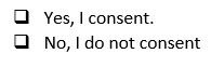 Besides other components to include on this page which we will discuss next, the actual process of obtaining that consent, could be as simple as asking respondents to checkbox one of the following two statements.