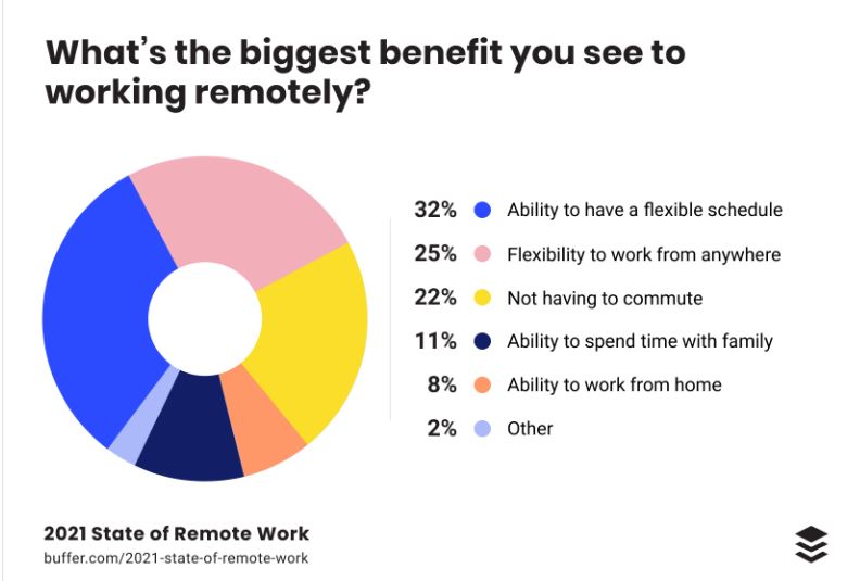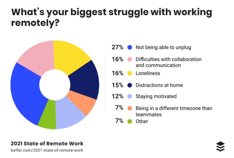 In their state of remote work report study of around 2, 500 employees in 2021, research specialists Buffer.com, identified about half a dozen key benefits and downsides of staff working remotely.